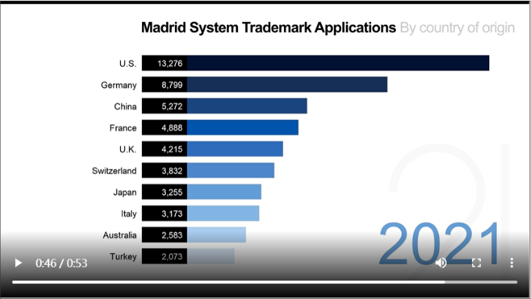 馬德里體系新統(tǒng)計數(shù)據(jù)顯示,2021 年馬德里國際商標申請量激增14.4%。WIPO 的國際商標體系共提交 73,100 件申請,實現(xiàn)了自 2005 年以來的最快增長。